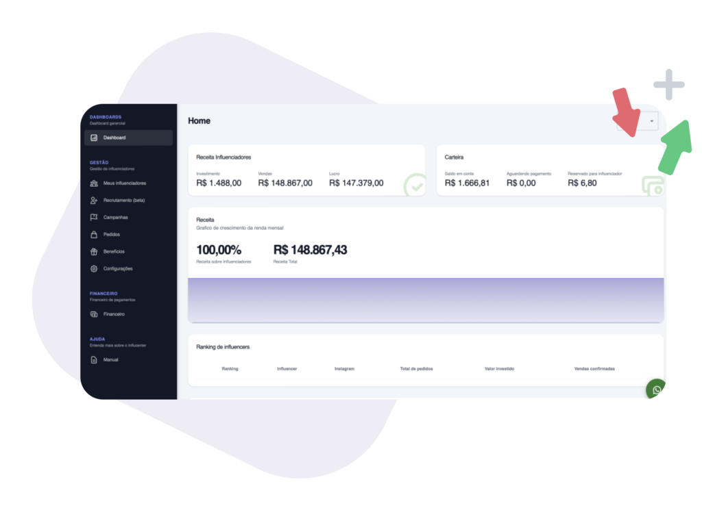 O Influcenter fornece relatórios e dashboard’s precisos, onde você pode observar o investimento e o retorno em vendas que cada influenciador obteve.